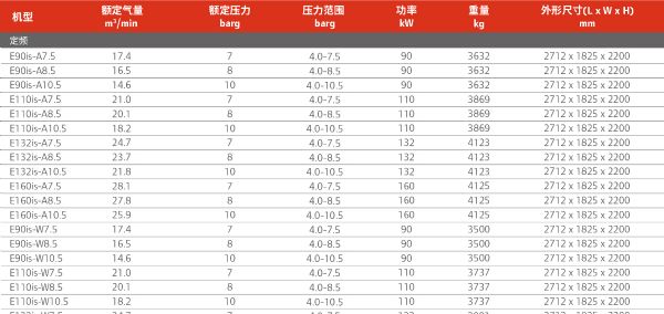 无油螺杆式空压机E系列90-160kW